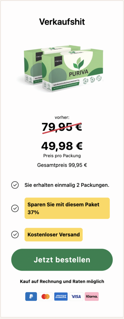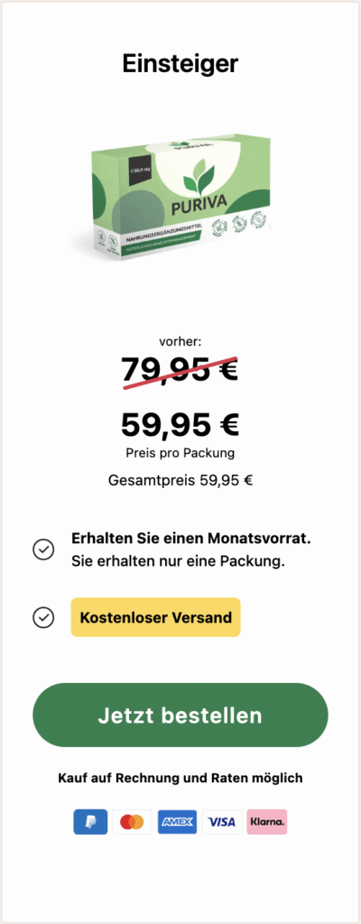 Viele Nutzer berichten von einer gesteigerten mentalen Klarheit, mehr Energie im Alltag und einer verbesserten Kontrolle über das Essverhalten. Puriva kann somit ein hilfreicher Begleiter auf dem Weg zu einem leichteren, fitteren Lebensstil sein – ganz in deinem Tempo.